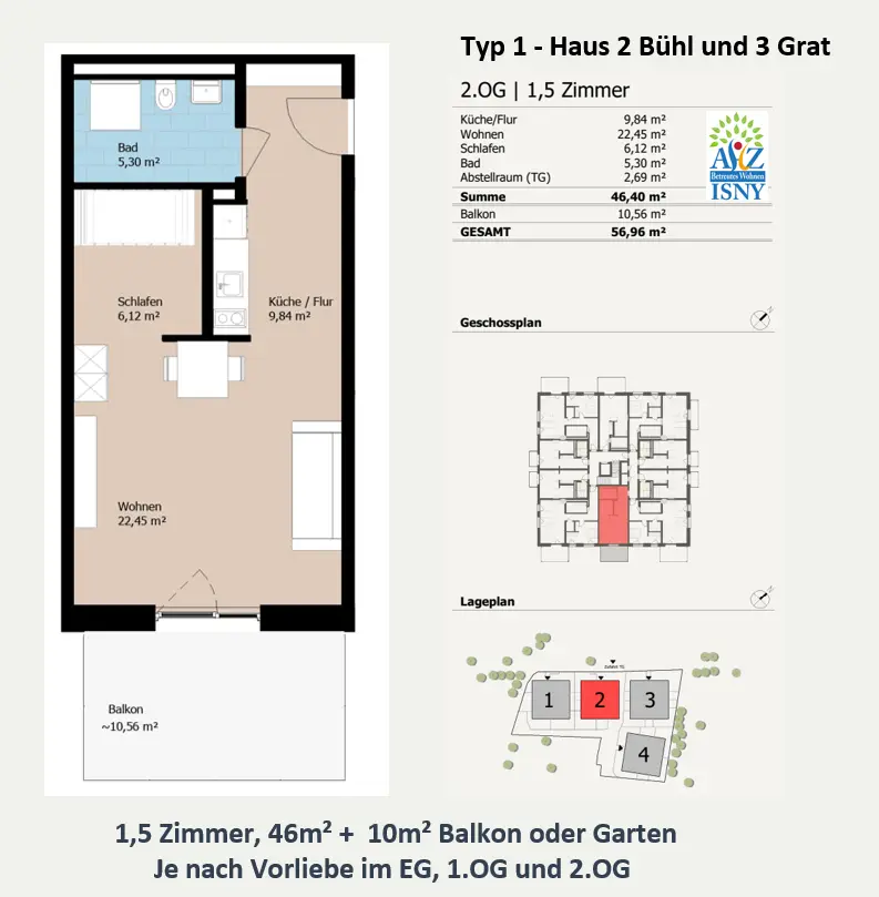 Betreutes Wohnen in den Vier Höhen – leben, wohnen, wohlfühlen, genießen im Achener Weg. Kompakte Wohnung, ideal für Singles.